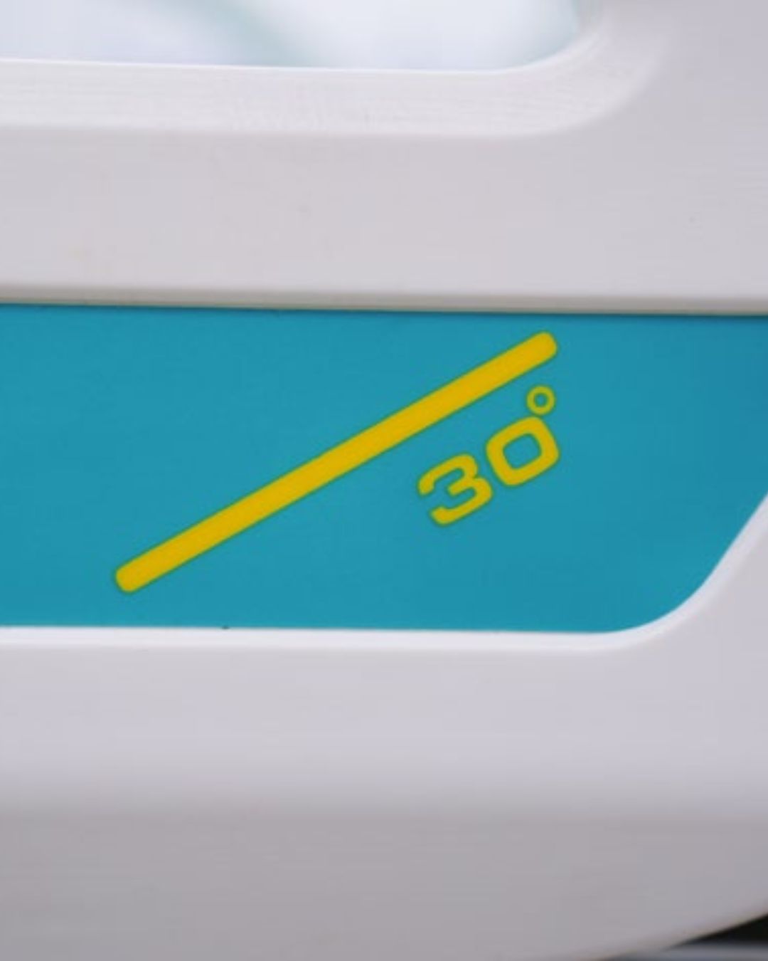 - Respaldo con tope inteligente a 30°: posición clínicamente recomendada para disminuir complicaciones respiratorias y riesgo de infecciones pulmonares.